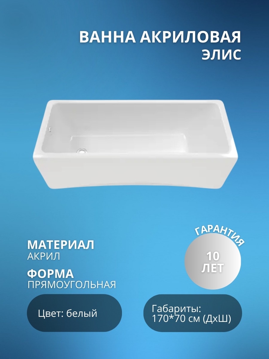 Представляем прямоугольную акриловую ванну Triton Элис размером 170x70 см и классическим белым цветом. Это просто находка для тех, кто ценит комфорт и стиль!
