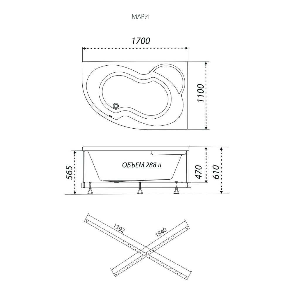 Акриловая ванна МАРИ Левая 170*110