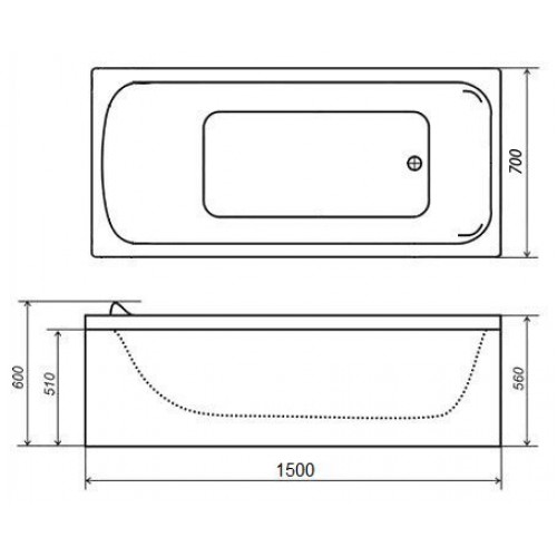 Акриловая ванна Стандарт 150*70 без ножек