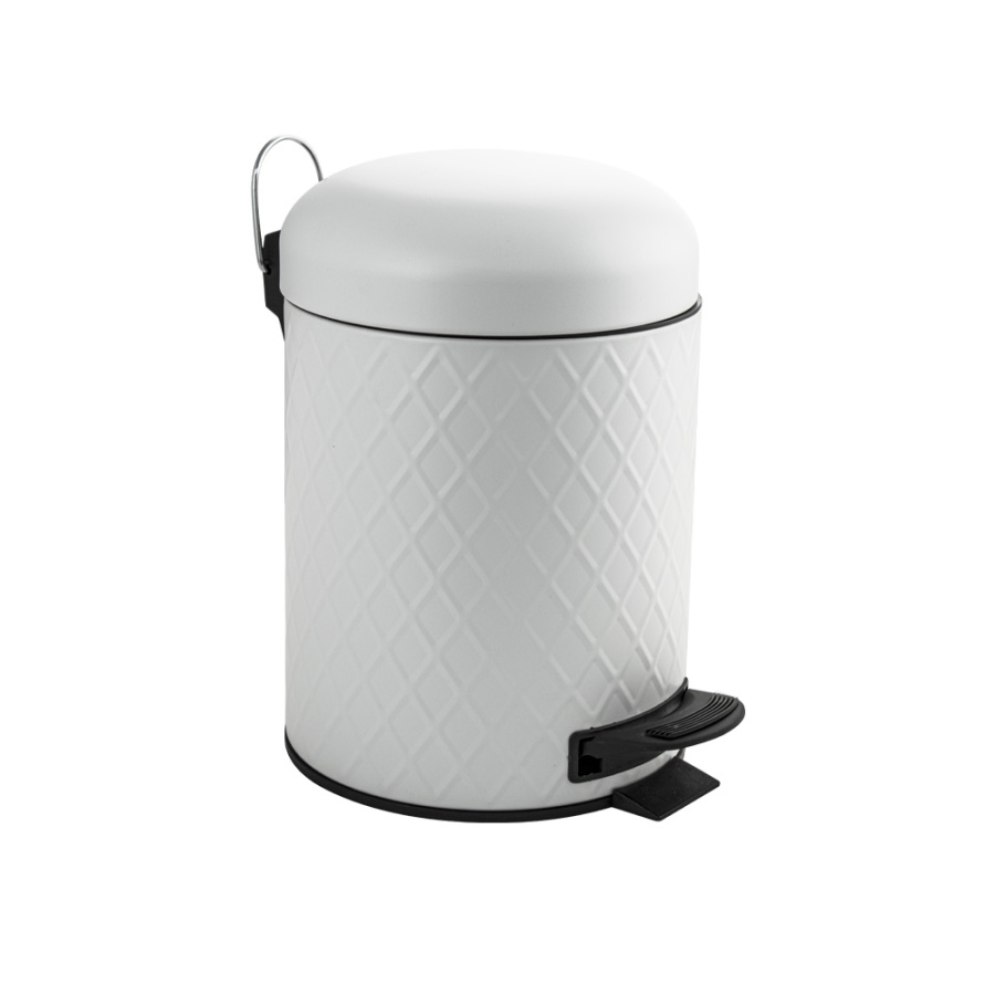 Ведро 1505 круглое, белое, эмаль с узором, из нерж. стали, с педалью, 5л