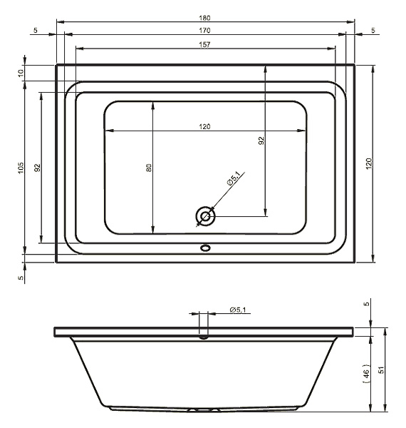 Длина 180 Ширина 120 Высота 51 Глубина 46 Цвет Белый Ориентация Отдельностоящая Форма Прямоугольная Гарантия 10 Объем 495 -