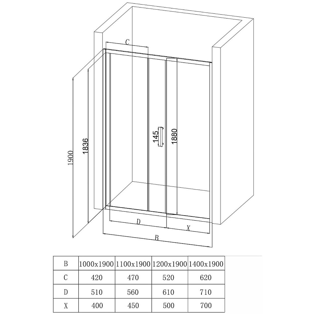 Душевая дверь EG1С 110*190 (хром, прозрачное)