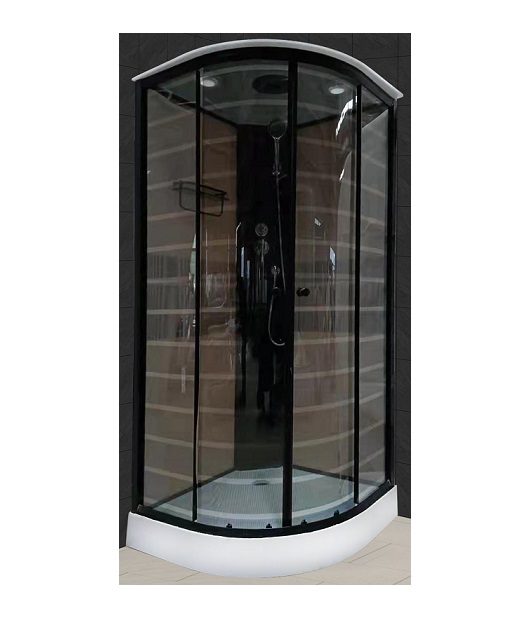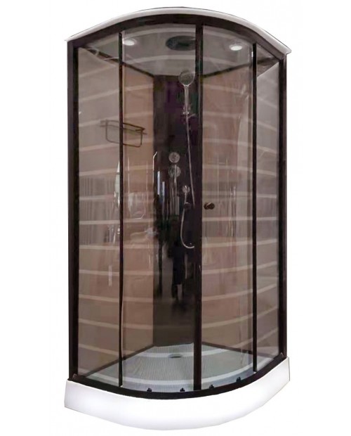 Комплектация: ПОДДОН С БОРТИКОМ, черный матовый профиль и дуги,черная панель, верхний душ, ручной душ с держателем, стеклянная полка, смеситель, без электрики.Характеристики