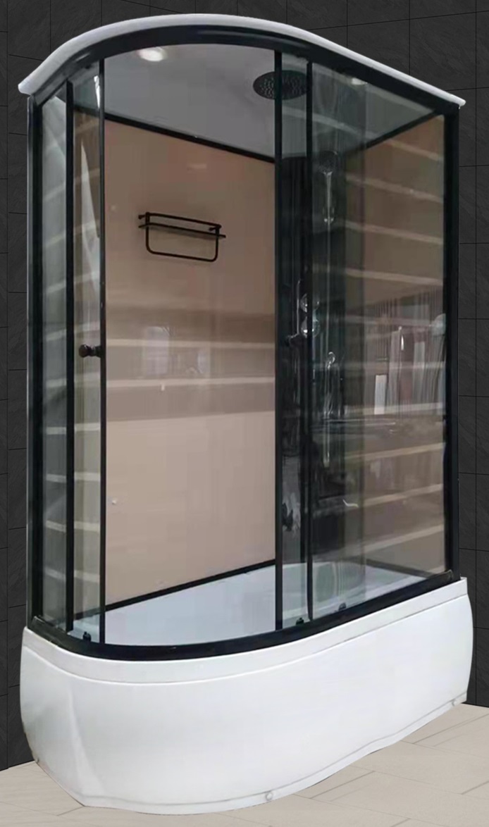 Душевая кабина Дана 54 L (120x80x215 см) в черном профиле, с крышей, с высоким поддоном (42 см) - это идеальное решение для вашей современной ванной комнаты! С размером 120*80*215, она обеспечивает достаточное пространство для комфортного и расслабляющего душа.