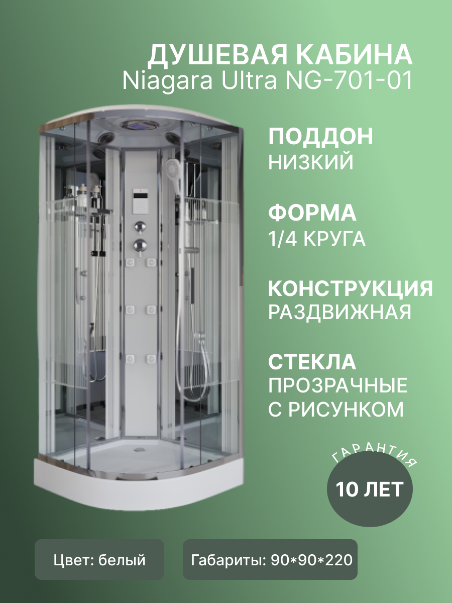 Душевая кабина Niagara Ultra NG-701-01 (90*90*220) низ.поддон(16см),стекло проз. с рисунком