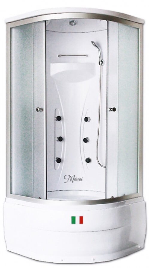 Душевая кабинa Verona WDN-012M - это закрытая угловая (четверть круга) душевая кабина, стандартных размеров 90х90 см, с раздвижными дверьми, оборудованная ручным и верхним душем и гидромассажем. Стекла закаленные, матовые, толщиной 4 мм. Поддон высокий, в комплекте с сифоном. Задняя стенка акриловая, профиль из алюминия серебристого цвета.