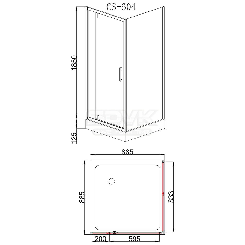 Душевое ограждение CS-604A 90*90*200 R/L н.п., профиль ЧЁРНЫЙ, прозрачное стекло 6мм