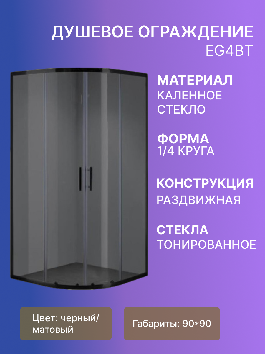 Душевое ограждение EG4BT 90*90 полукруг. (черн.мат., тонированное стекло)
