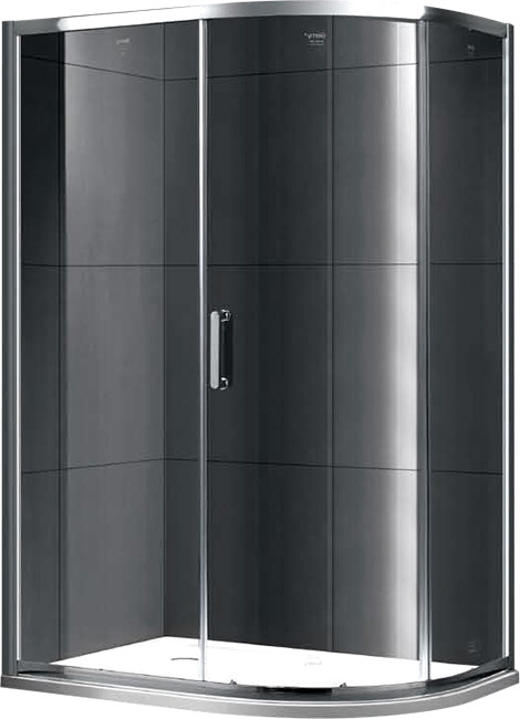 Радиальный, асимметричный душевой уголок Victoria S30181 с одной раздвижной дверью и двумя фиксированными стеклами. Конструкция из прозрачного, закаленного стекла, которую обрамляет полированный, хромированный профиль.