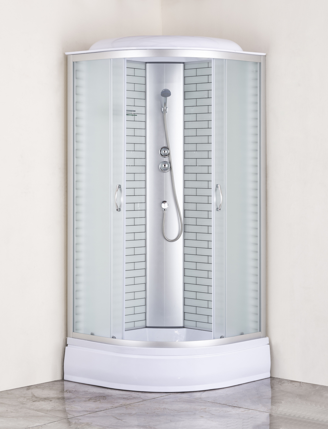 Душевая кабина CS-6610-25FW,100*100*215 ср.п., стекло 4мм, белый кирпич, профиль хром