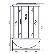 Кабина имеет размер 90*90 см, высоту 220 см, форма - угловая.