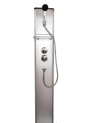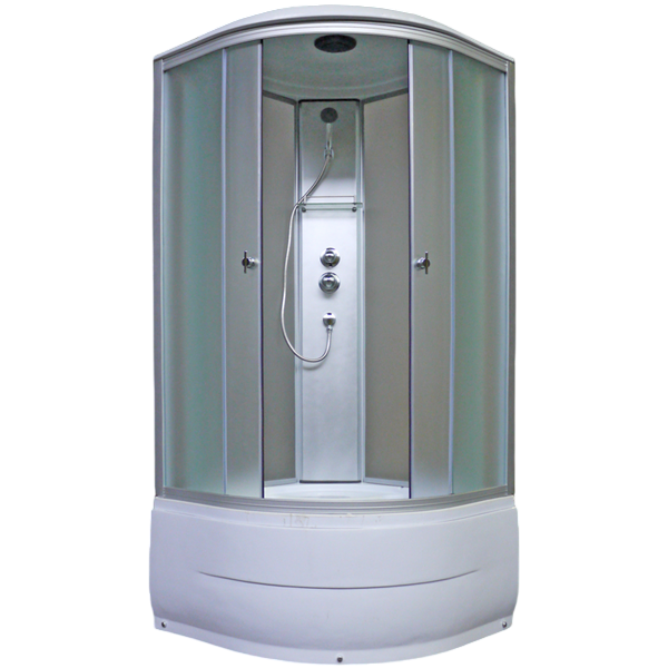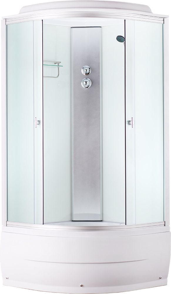 Задние стенки белое стекло, передние стенки матовое стекло, конструкция дверей у кабины раздвижная.