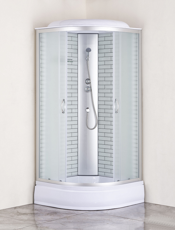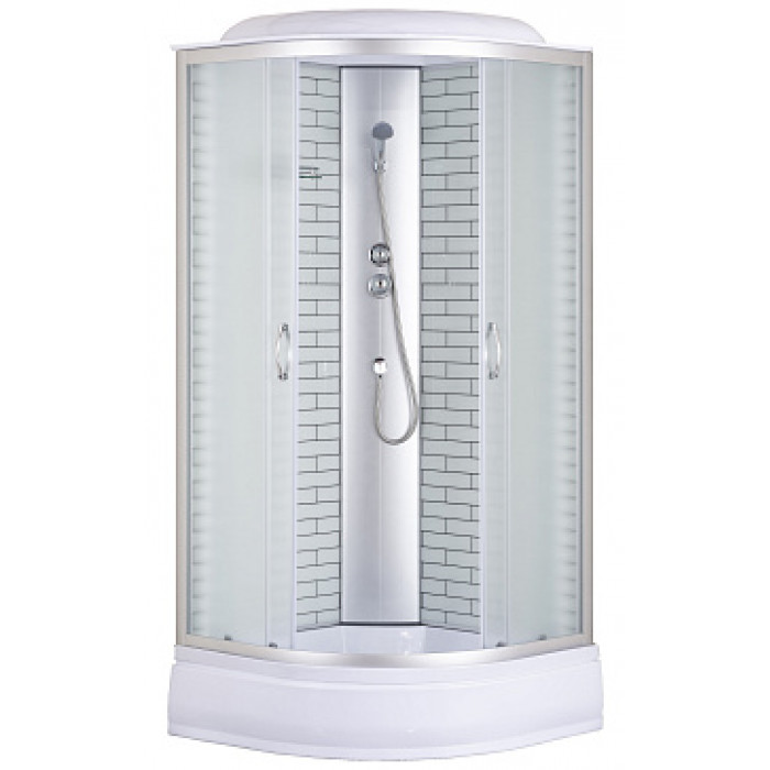 Душевая кабина CS-6690-25FW,90*90*215ср.п 25см,бел.кирпич.узор,стекло 4мм,проф.хром!!!УСИЛЕННАЯ!!!