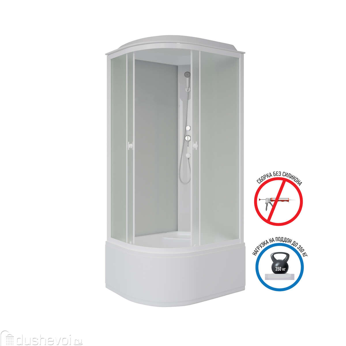 Высокий поддон обеспечивает надежную защиту от протечек и добавляет кабине солидности.