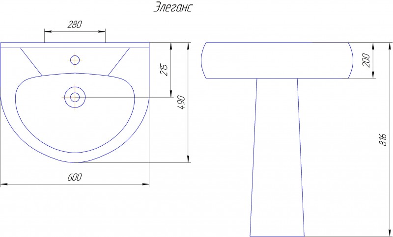 ЭЛЕГАНС 60 раковина с пьедесталом