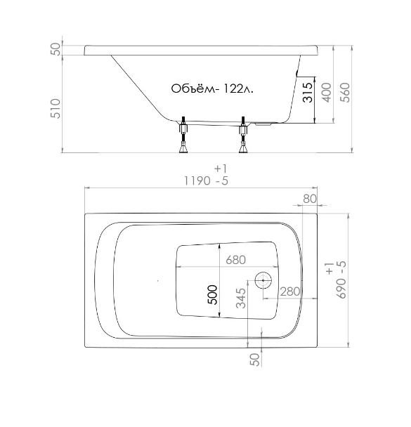 Gamma ванна (1200*700*540) БЕЗ НОЖЕК