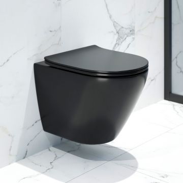 Унитаз K505BM имеет компактные размеры: длина 485 мм, высота 335 мм и ширина 360 мм, что делает его подходящим для небольших пространств. Черное матовое покрытие придает ему элегантный и современный вид, а также легко сочетается с различными стилями оформления.