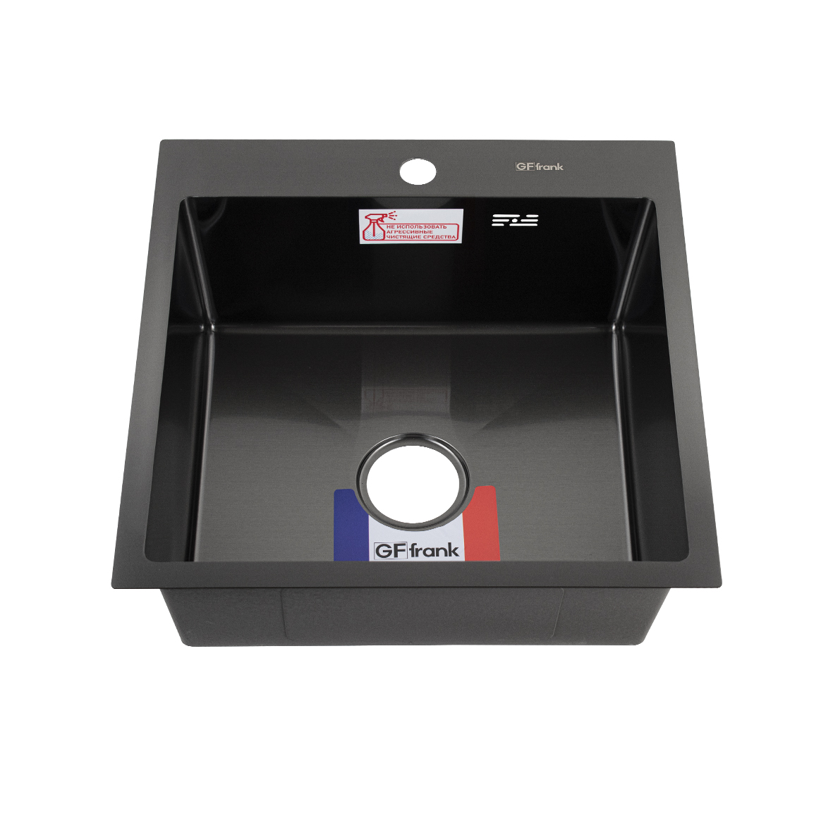 Мойка GFFrank 50*50 ГРАФИТ гл ч 20см, большой сифон с переливом 50502G