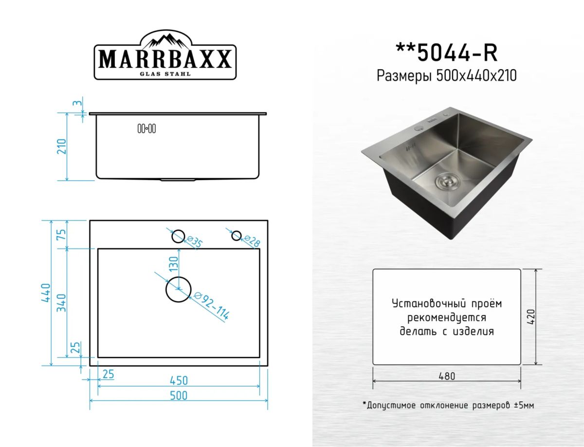 Мойка MARRBAXX C5044-S Сатин с квадр.отв., нерж
