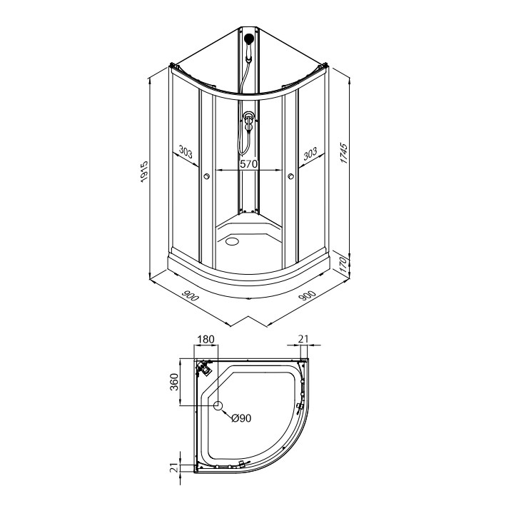 ЛАЙТ А 90*90 душевая кабина (для ДН1 без крыши) +сифон D90