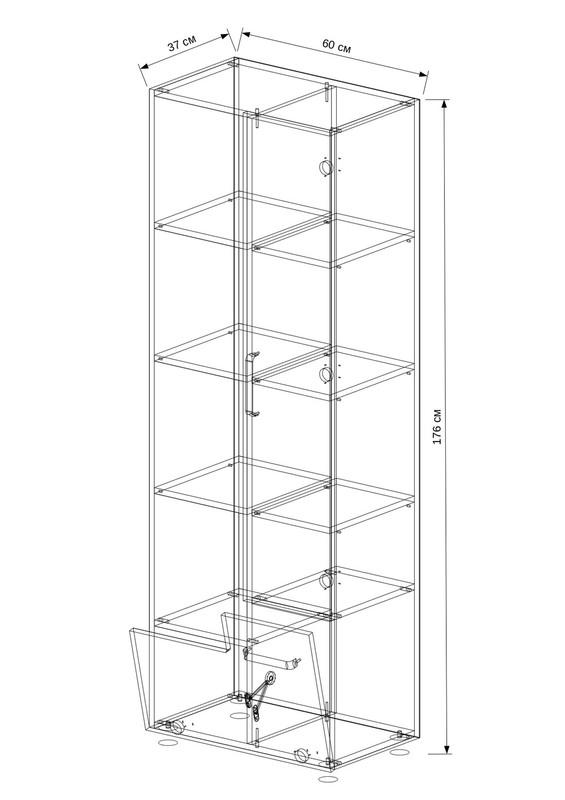 Габариты пенала составляют: длина — 370 мм, ширина — 600 мм и высота — 1760 мм, что делает его компактным, но в то же время вместительным.