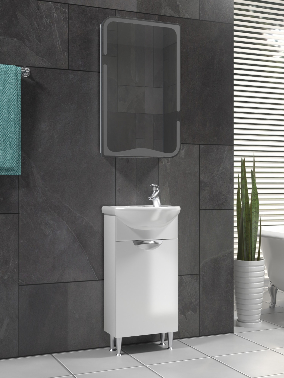Тумба "Callao 400-1-0" напольная Белая с раковиной Азов 40 (VIGO)