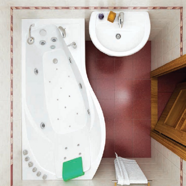 Акриловая ванна в асимметричном дизайне Мишель привлекает своей необычной формой и эргономикой. Конструкция ванны имеет широкую зону в области спинки и сужающуюся часть возле слива, засчёт чего образуется плавный изгиб фронтального борта. Такое решение выглядит не только эффектно, но обеспечивает дополнительное место для установки раковины. Чаша ванны предусматривает наличие удобной спинки с выступом для поддержки мышц шеи и боковыми выемками для опоры локтей.