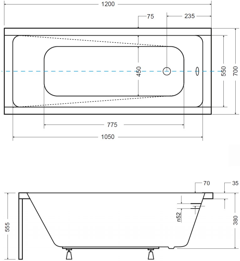 Прямоугольная акриловая ванна с плавными линиями украсит любую ванную комнату.