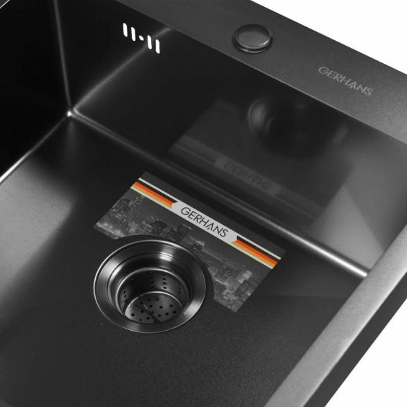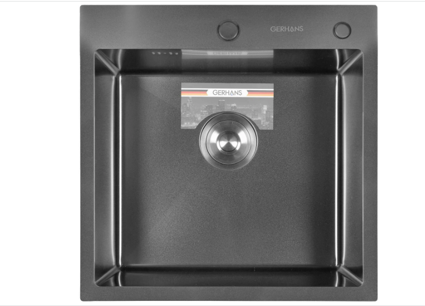 Кухонные мойки премиум класса Gerhans изготовлены из нержавеющей стали SUS304 толщиной от 1 до 3 мм. Химический состав и свойства делают марку 304 наиболее подходящей для применения в пищевой промышленности. Она показывает высокие характеристики коррозийной стойкости в агрессивных средах. Шумоизоляция, нанесенная путем напыления, позволяет значительно снизить звук от потока воды."Характеристики