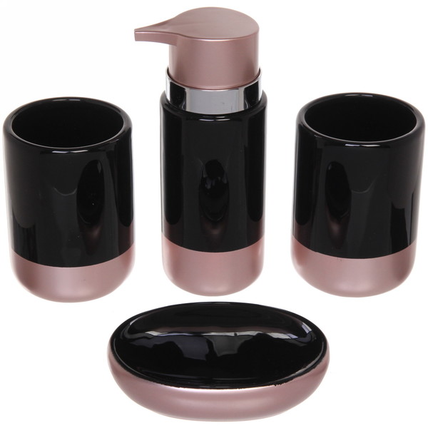 Набор для ванной из 4-х предметов керамический "Камилла" черно-розовое золото 532-295