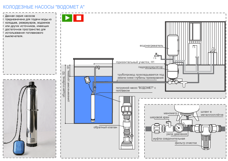 Насос погружной ВОДОМЕТ ПРОФ 55/35 А дф