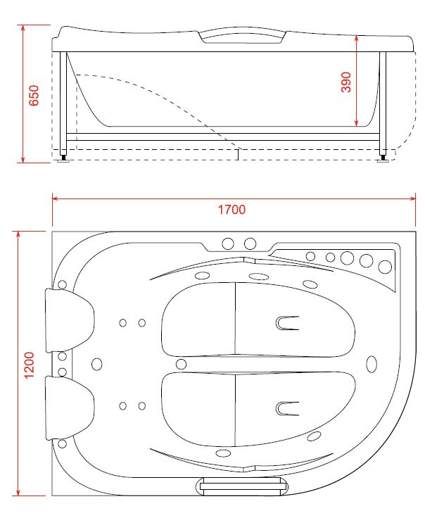 OLB-807 R Ванна 120*170 ГМ с насосом и переливом