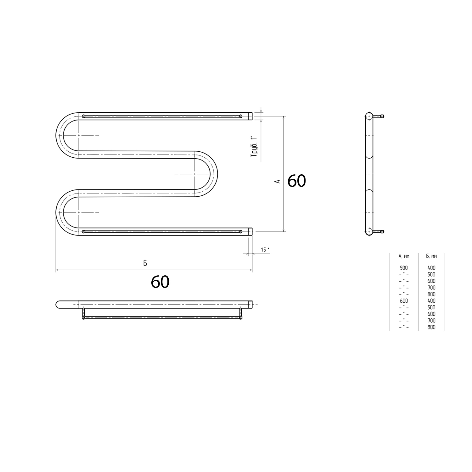 Полотенцесушитель водяной М-образный полимер 600*600 (1")