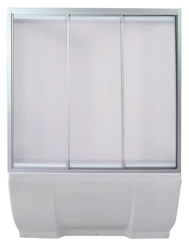 Шторка для ванны раздвижная. Состоит из трех секций, открывается вправо и влево с фиксацией. Предназначена для защиты от брызг при принятии ванны и душа, устанавливается на ванну. Классический дизайн: матовое стекло толщиной 4 мм.