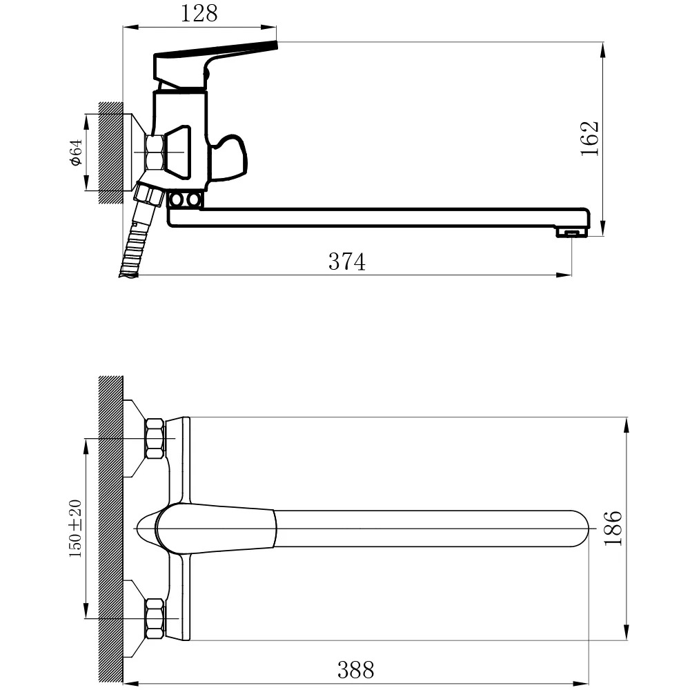 Керамический дивертор обеспечивает мягкое и комфортное переключение и длительный срок службы. Длина смесителя 374 мм.Характеристики