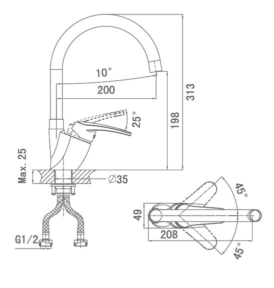 Производитель D&K Цвет Хром Гарантия 5 Подвод воды 1/2 Высота излива 32 Длина излива 20 -