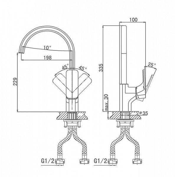 Производитель D&K Цвет Черный Гарантия 5 Подвод воды 1/2 Высота излива 34 Длина излива 20 -