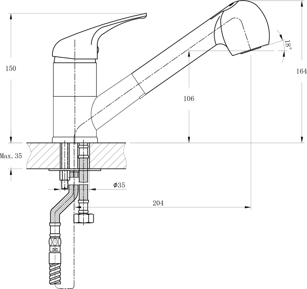 Смеситель предназначен для монтажа на столешницу и оснащен всем необходимым для быстрой и простой установки: креплениями и гибкой подводкой. Встроенный аэратор обеспечивает мягкий и ровный поток воды, предотвращая разбрызгивание.