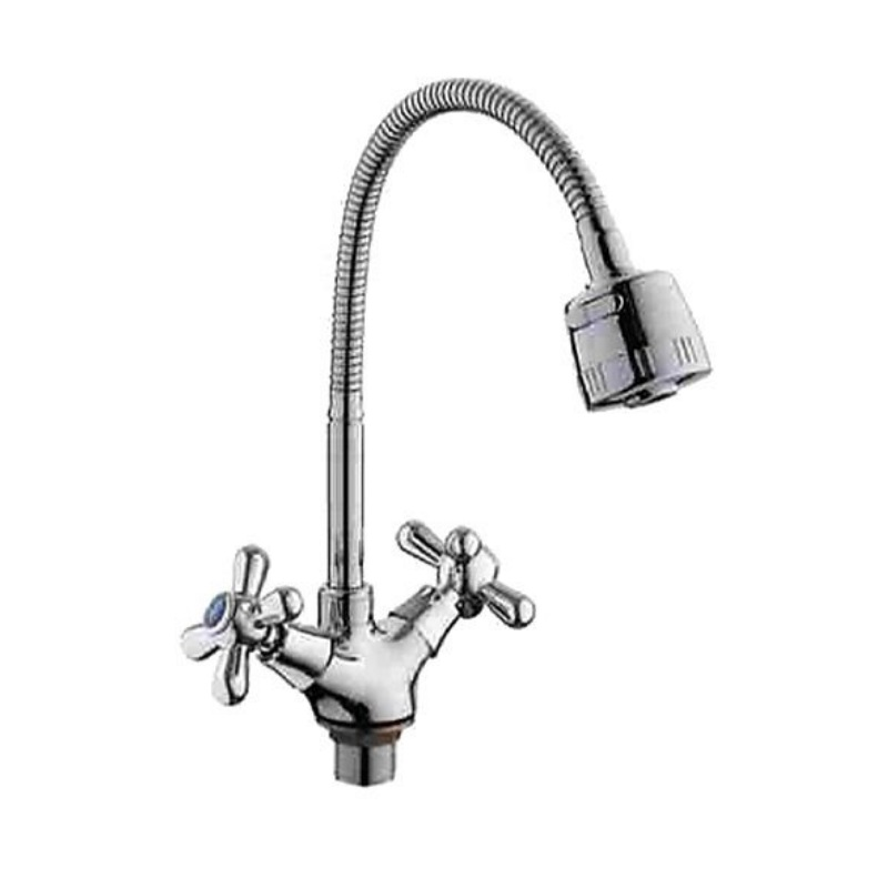 Смеситель д/кухни D153819-T с 2-мя рукоятками и гибким изливом 2 реж