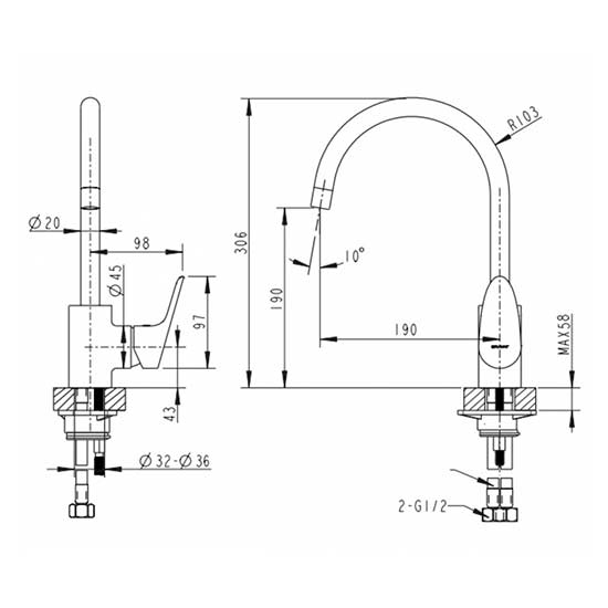- излив поворотный;