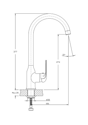Благодаря своим компактным размерам (ширина 4.5 см, длина 18.6 см, высота 37.7 см), он идеально подойдет даже для небольших кухонь. Рычажное управление обеспечивает плавную и точную регулировку температуры и напора воды.