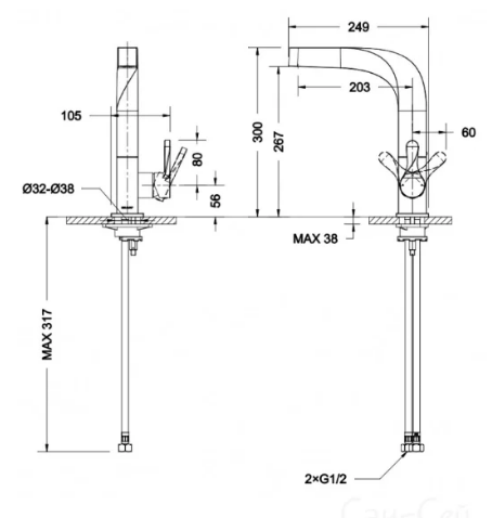- подключение: гибкие шланги;