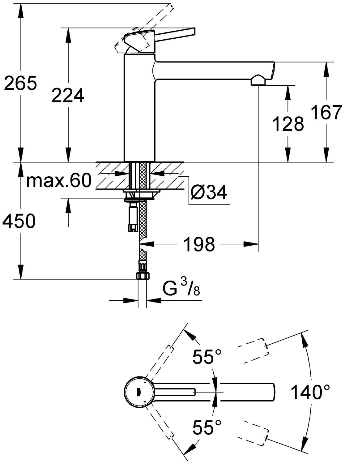 Высота излива, мм 128