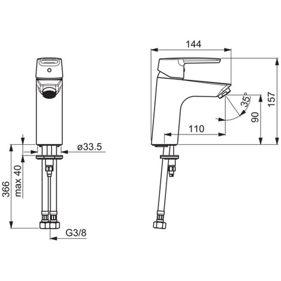 Стандарт подводки: 3/8" - стандартный размер для подключения к водопроводной сети.