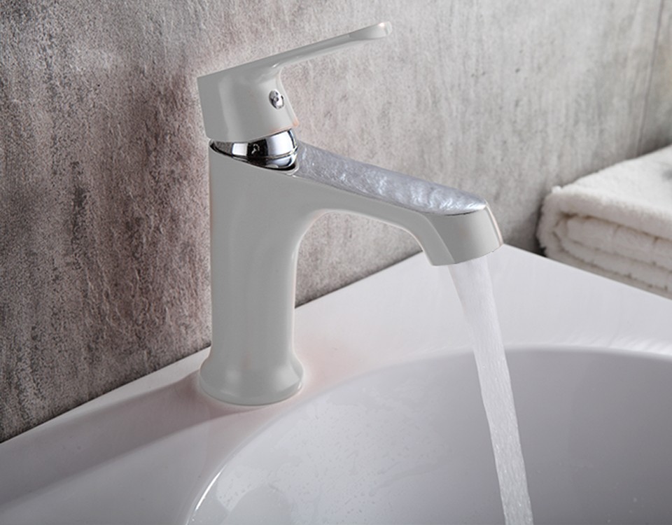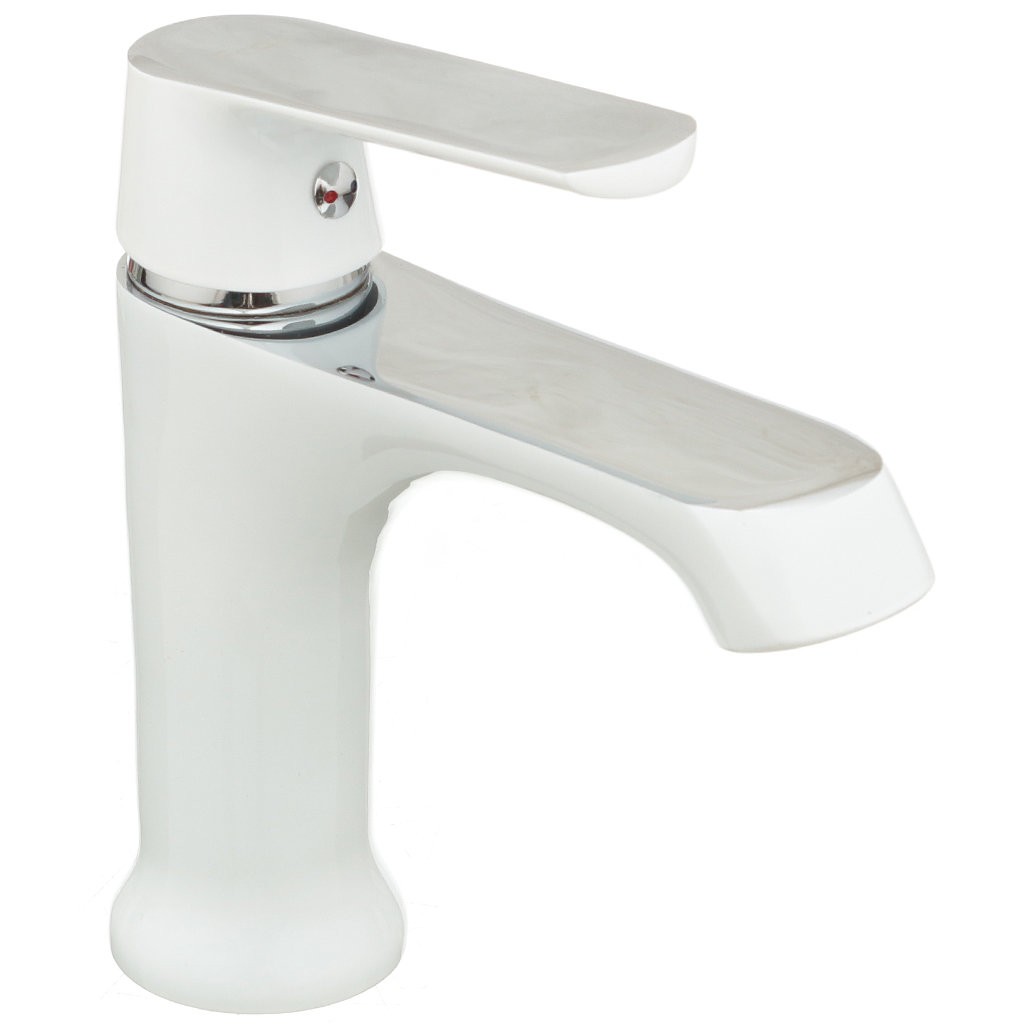 Frap смеситель для раковины, однорычажный, излив короткий не поворотный, керамический катридж 35mm, цвет белый, крепление на гайке, корпус латунный, гибкая подводка 35см.