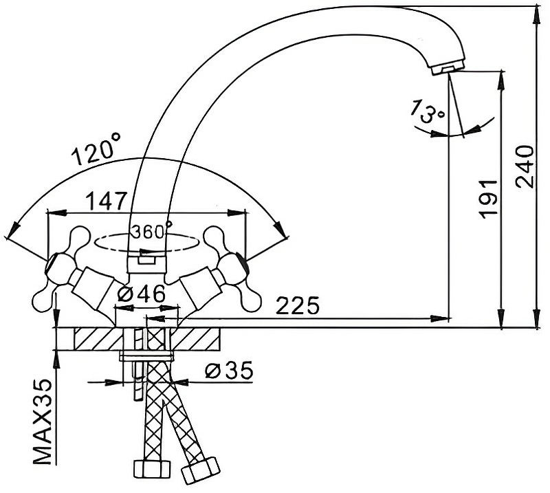 Изготовленный из прочной латуни, смеситель FRAP F4219-4 отличается надежностью и долговечностью. Его габариты (ширина 147 мм, высота 240 мм, длина 260 мм) обеспечивают удобство использования, а высота излива в 191 мм и длина излива в 225 мм позволяют комфортно мыть посуду любого размера.