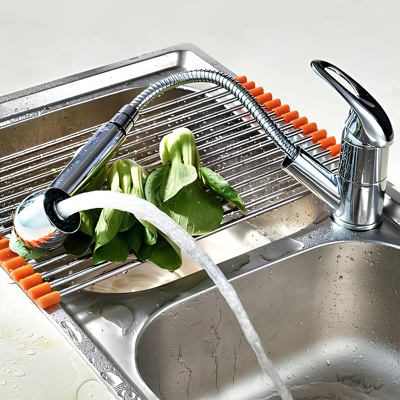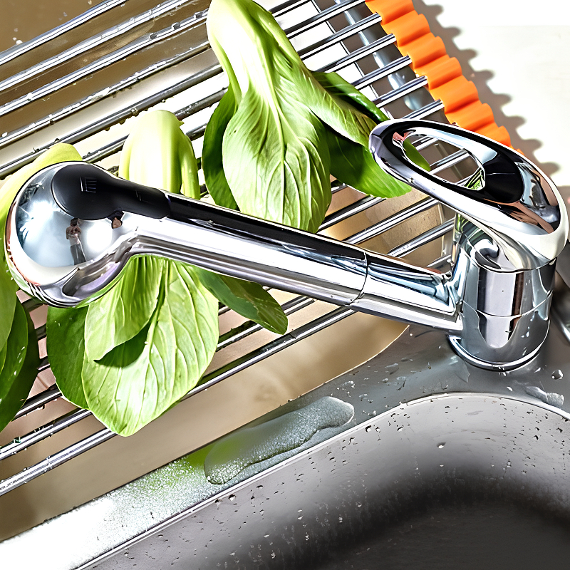 Выдвижной излив: Обеспечивает максимальное удобство при мытье посуды и продуктов, позволяя легко достать до самых отдаленных уголков раковины.