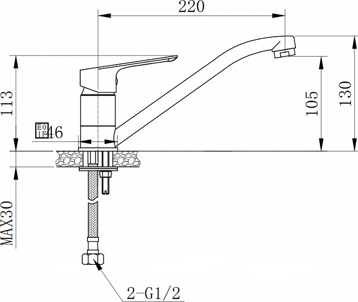 Смеситель кухонный одноручковый с гибкой подводкой 56A0906