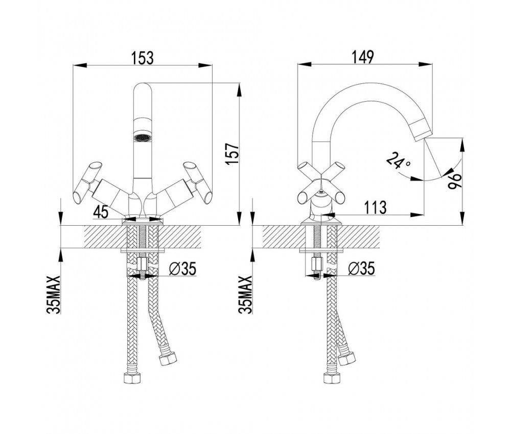 Смеситель для умывальника с поворотным изливом