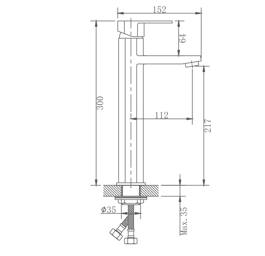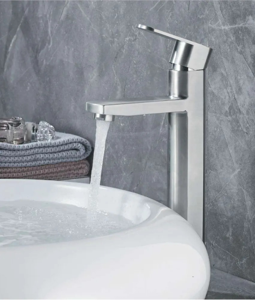 Высокий смеситель для раковины Haiba. Используется для установки на столешницу. Идеально подхлдит для раковин-чаш. Керамический картридж 35 мм. Изготовлен из нержавеющей стали. Максимальная глубина монтажа 35 мм. Диаметр монтажного отверстия 35 мм.